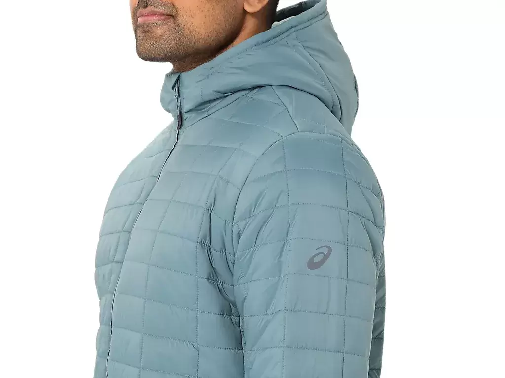 Reflective ASICS logo on wearer’s left shoulder