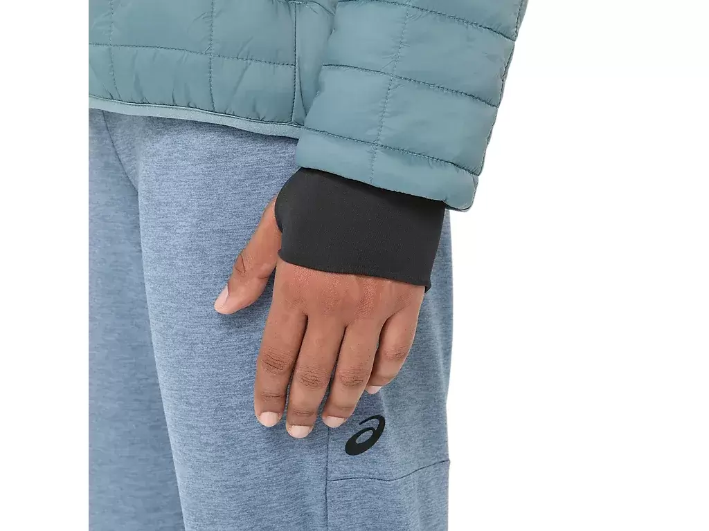 The sleeves have cuff gussets with thumb holes to keep it in place