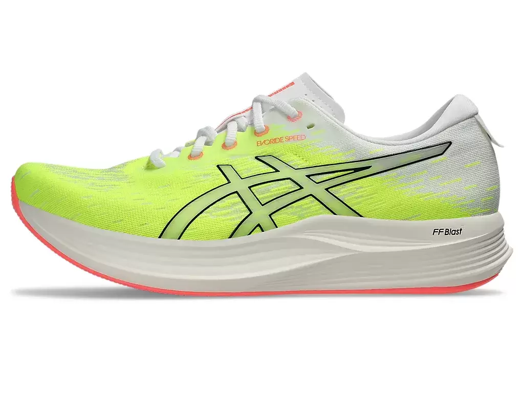 The EVORIDE™ SPEED 2 shoe is a lightweight trainer that’s designed to provide more energy savings than the previous version. This trainer’s updates focus on speed, comfort, and fit.FF BLAST™ cushioning helps promote softer landings and a responsive rebound. Meanwhile, the 3D SPACE CONSTRUCTION™ feature helps reduce weight while improving deformation.Lastly, the AHAR™ rubber outsole material offers improved durability on various surfaces.