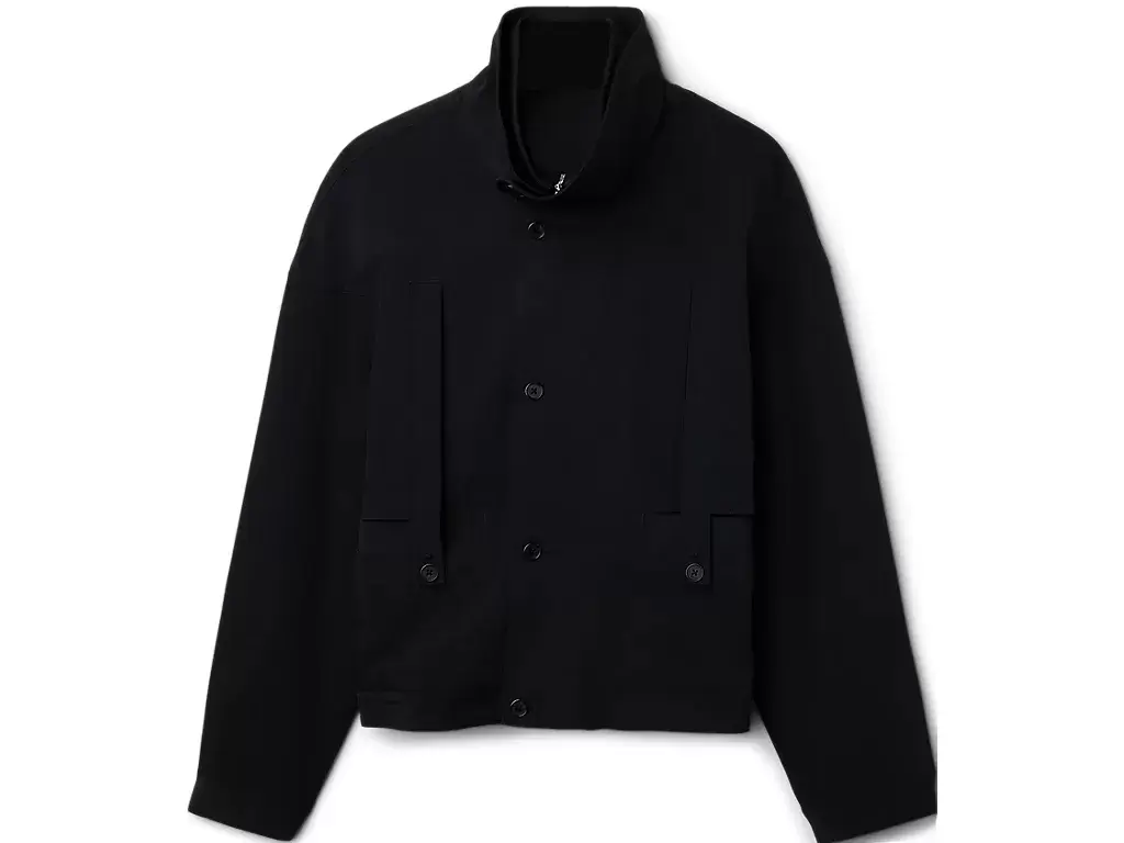 -Multi-functional pocket​s-Double collar​-Adjustable cuff​-Unique armhole cutting​ design-Stretch fabric-94% nylon, 6% PU