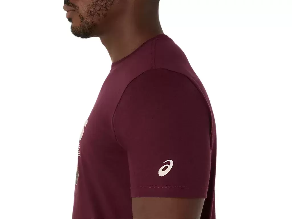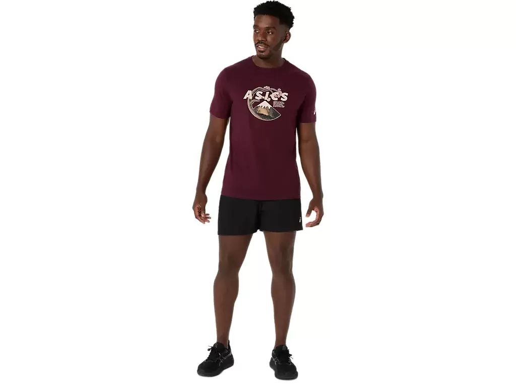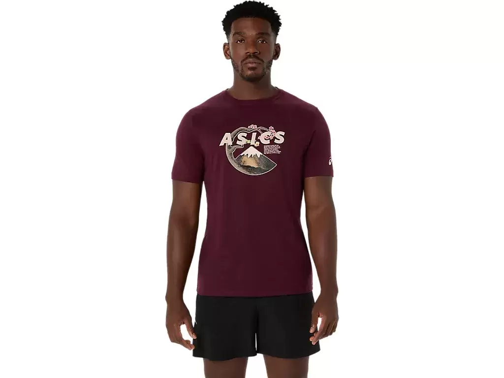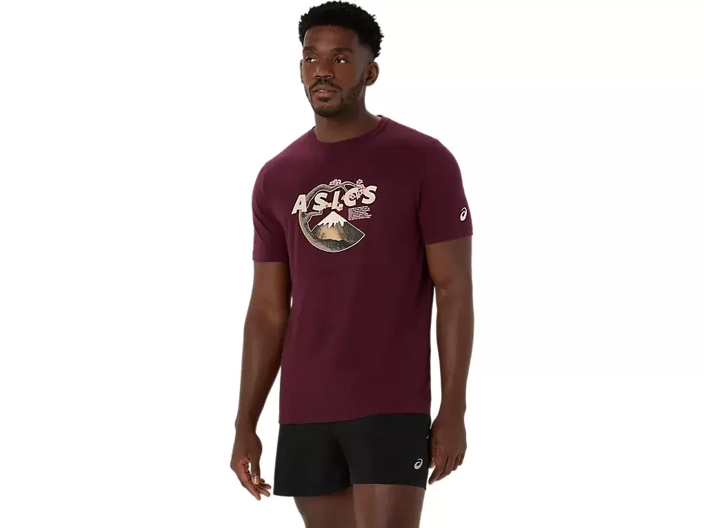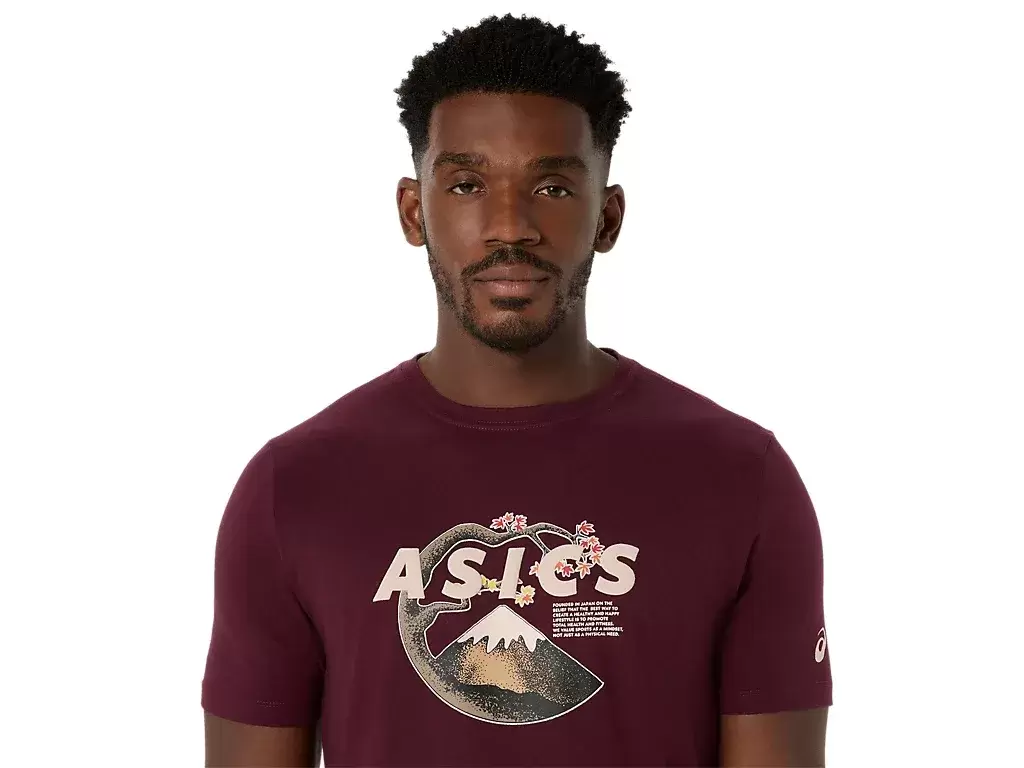 This comfortable knit short sleeve tee takes inspiration from scenes in nature. It features a serene Mt. Fuji and cherry blossom graphic across the chest.