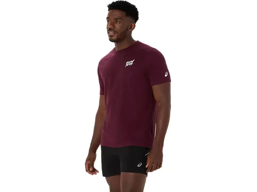 This comfortable knit short sleeve tee takes inspiration from running in New York. The front features the phrase, “”RUN NYC,”” which is complemented with various NYC landmarks on the back.