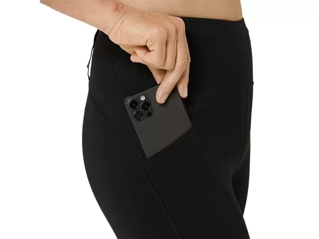 Thanks to the supportive fit and soft, stretch-knit fabric, these tights offer a more cool and comfortable feel in varying temperatures. This tight features a convenient phone pocket at the back and an additional phone or gel side thigh pocket that is sweat-resistant and bounce-limiting. Additionally, there is an SMSB elasticated loop storage system for a jacket, tee, towel, or any running essential.