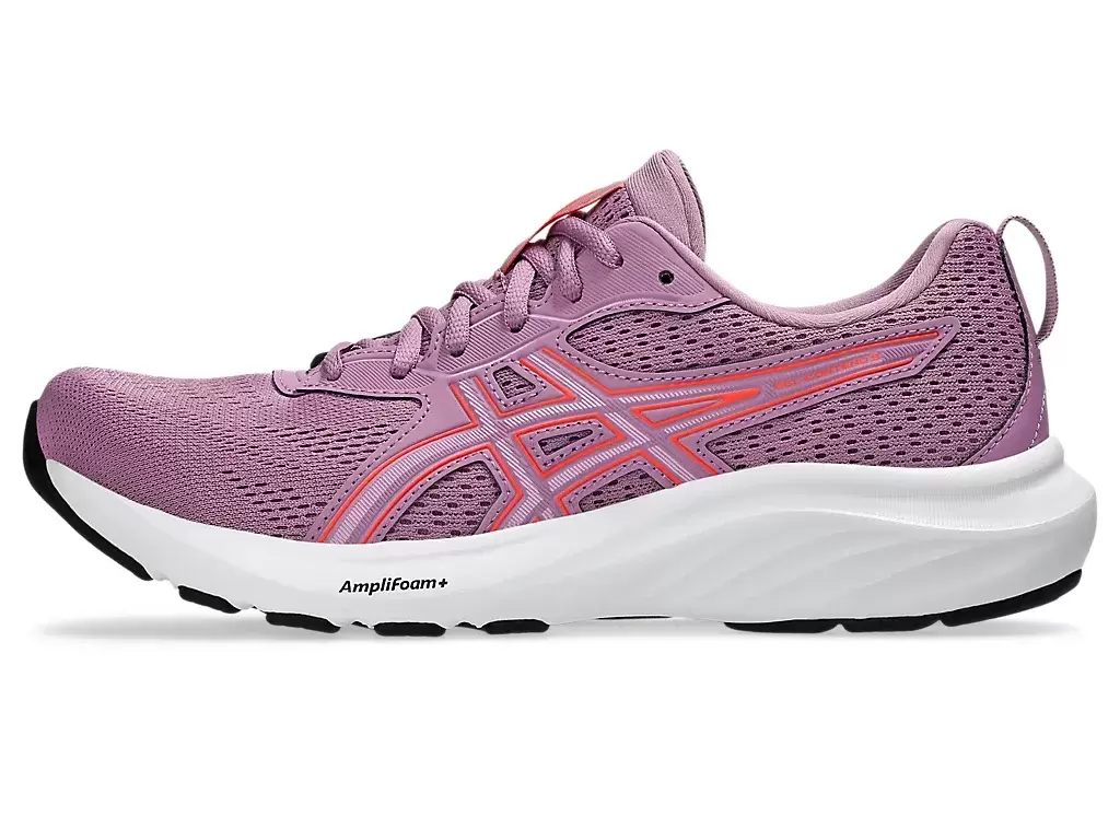 The midsole features GEL® technology and AMPLIFOAM+ cushioning. These technologies help increase durability while creating a softer feel underfoot.