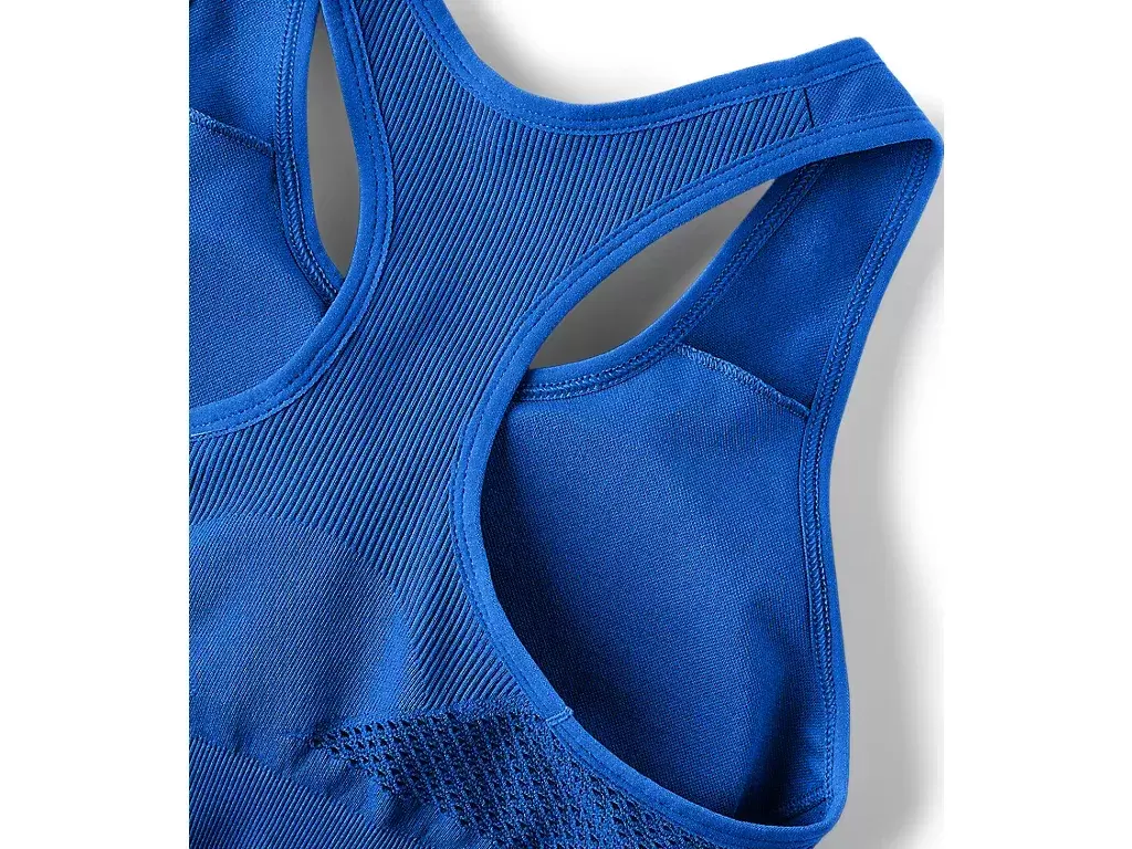 This low-support bra also features a ribbed band for additional support. The mesh structure and pattern and the wide open racerback design helps move with your body’s natural arm raising motion so you can keep focused during your training.