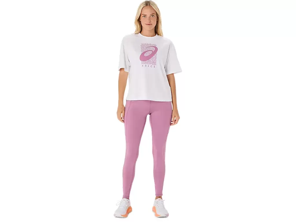 The top is also complimented with a seasonal ASICS® Spiral graphic, a cropped length, relaxed fit design, and side slits for ease of movement.