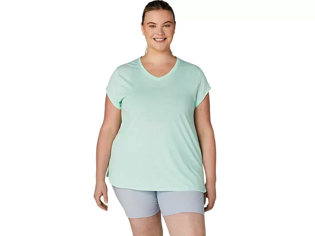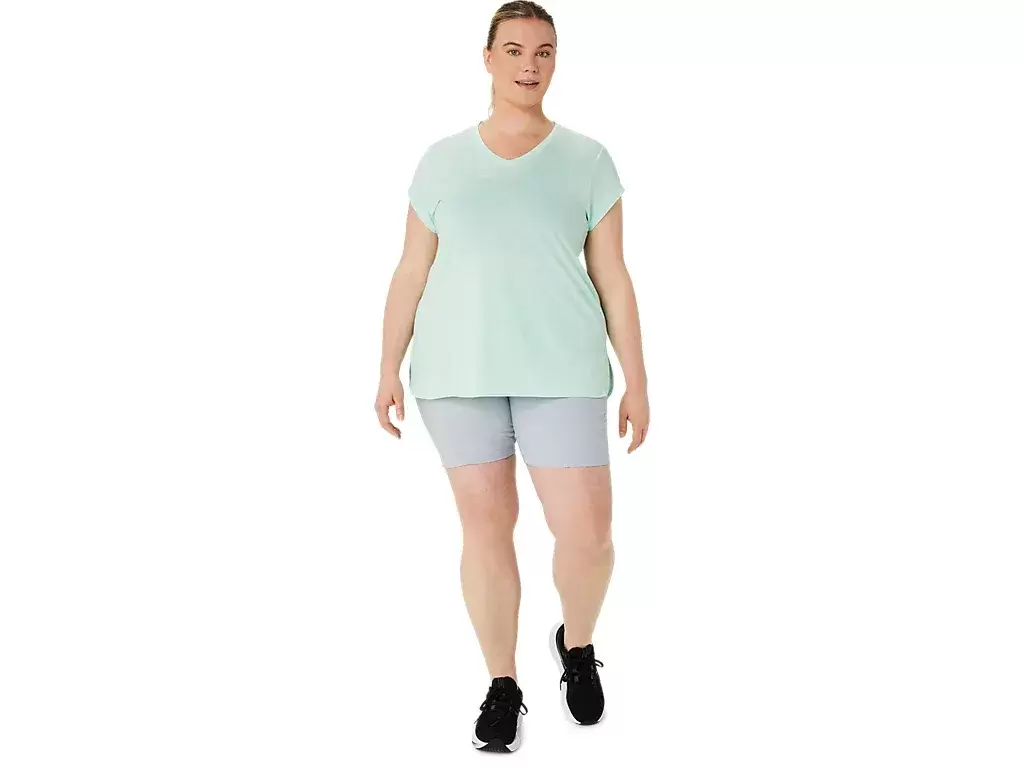 This short sleeve V-neck top is designed to provide a sleek next to the skin feel. It features a comfortable knit fabric that’s paired with forward side seams to improve freedom of movement.