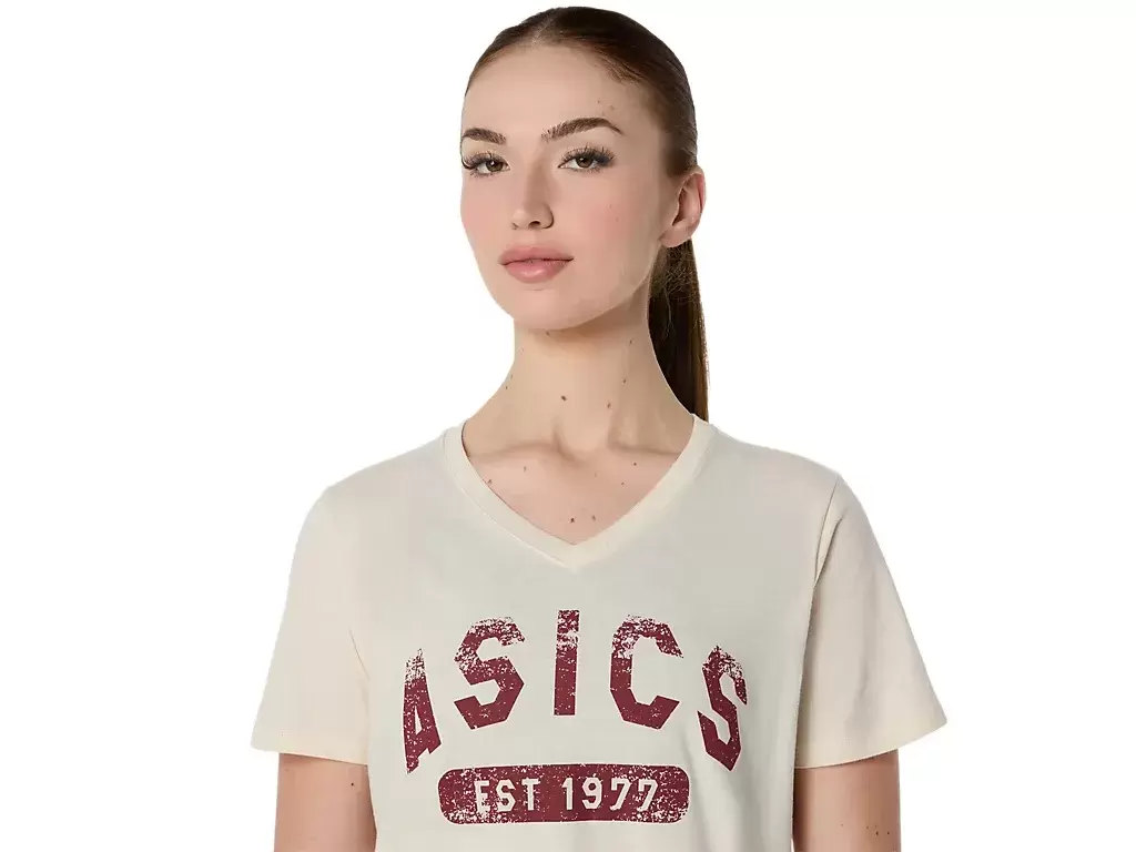 Constructed with a knit fabric, this top is functional for a variety of workout regimens. Additionally, this tee also incorporates a retro ASICS 1977 graphic across the front.